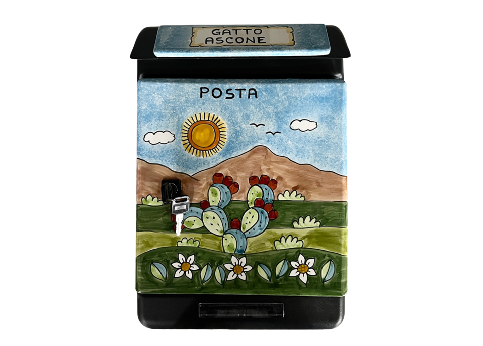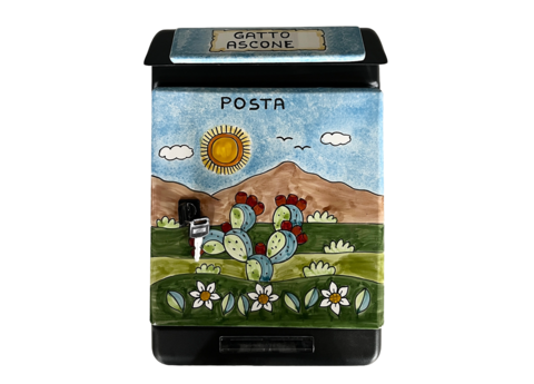 Cassetta postale in lamiera zincata verniciata con piastrelle in ceramica personalizzata.