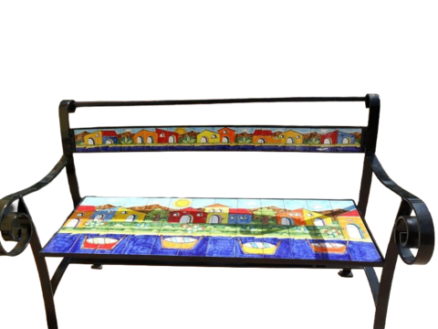 Il decoro delle piastrelle in ceramica e realizzato integralmente a mano ed anche la lavorazione del ferro battuto e zincato è effettuata dalla nostra azienda.