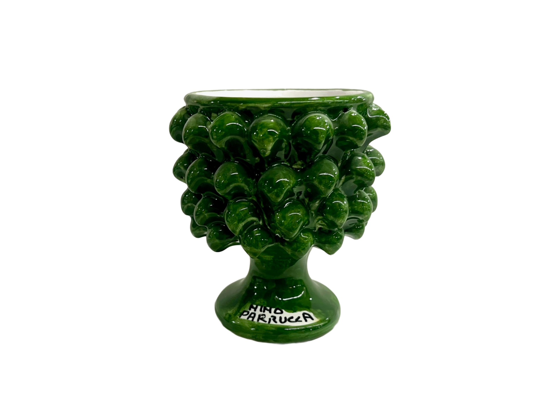 La mezza pigna in ceramica porta con sé lo stesso simbolismo antico di eternità, rinascita e buon auspicio della versione intera, ma si arricchisce di un carattere pratico e versatile che la rende perfetta per la vita quotidiana.