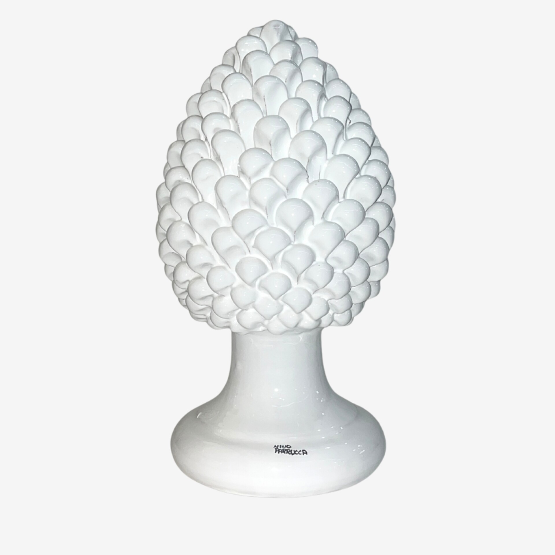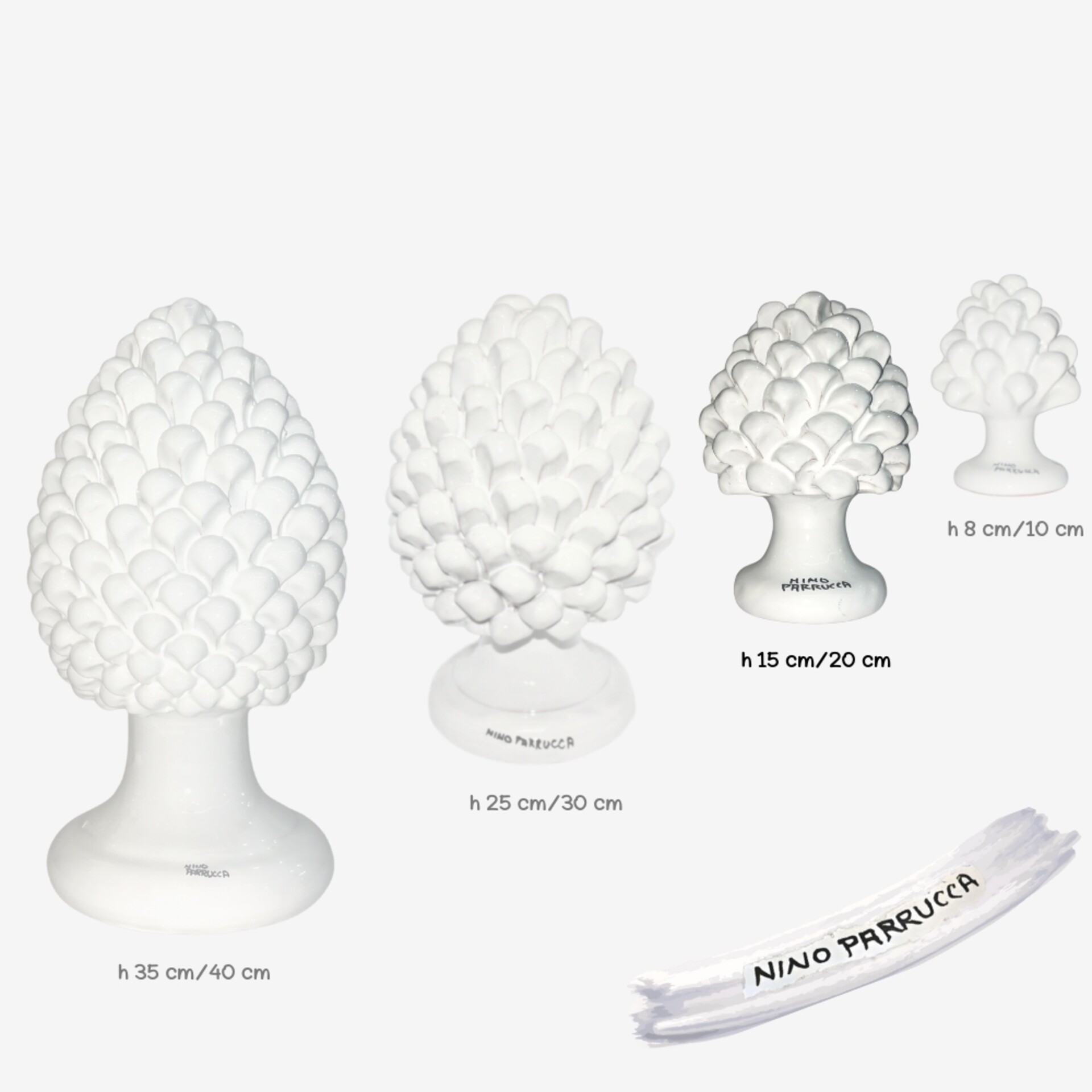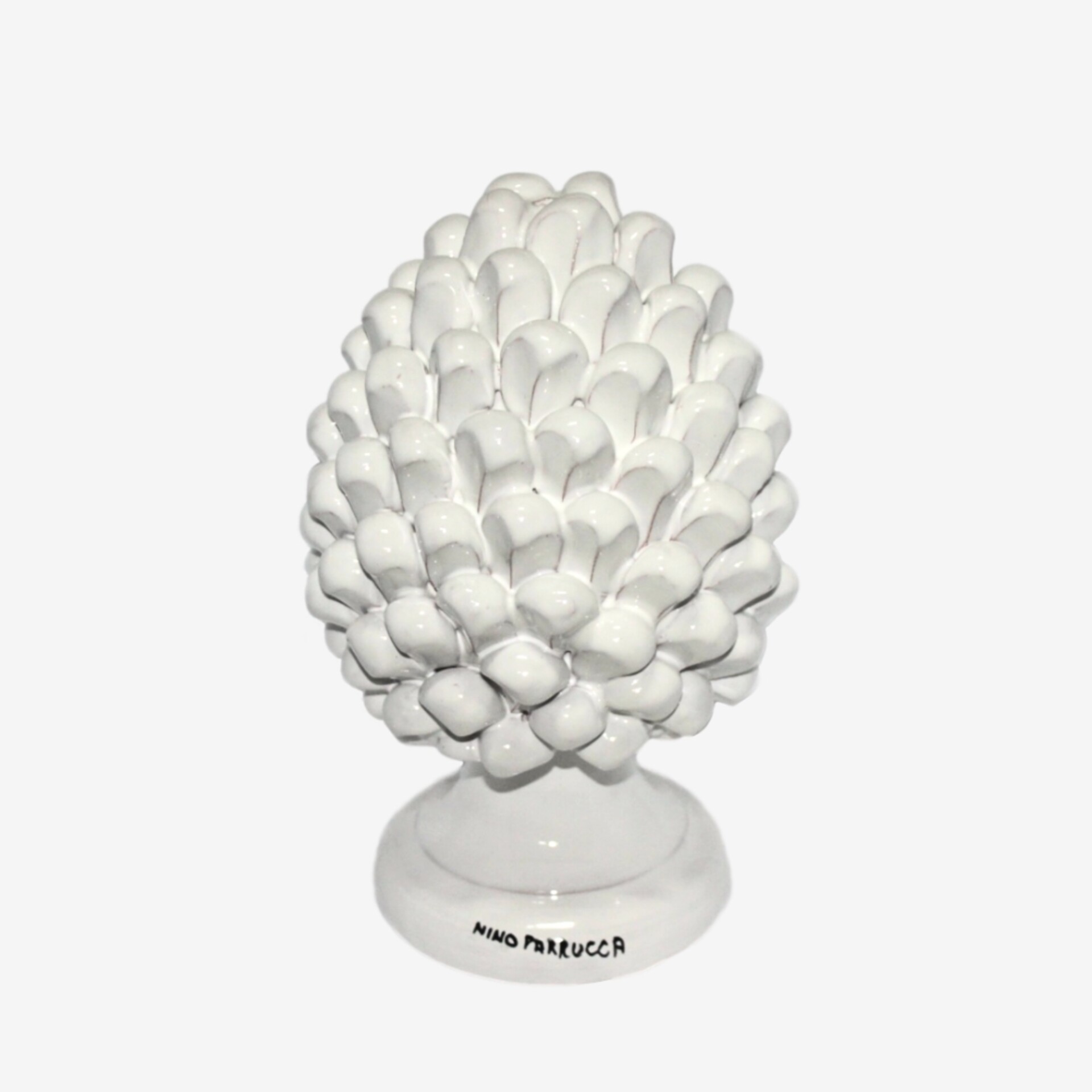 La pigna siciliana bianca racchiude purezza, luce e nuovi inizi. Simbolo di armonia e pace interiore, è un portafortuna ideale per chi desidera rinnovarsi o intraprendere un nuovo cammino di vita. Raffinata e luminosa, dona eleganza a qualsiasi ambiente, sia classico che moderno, sia in casa che all’aperto.