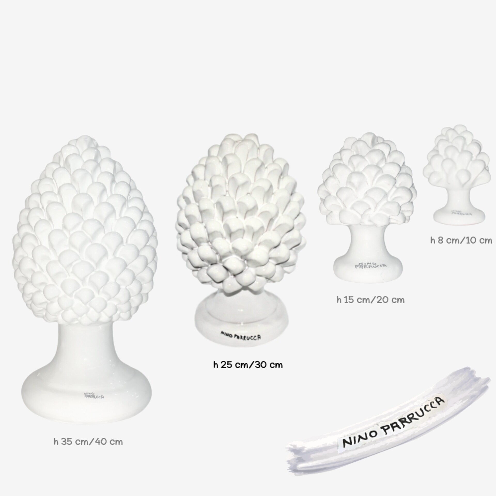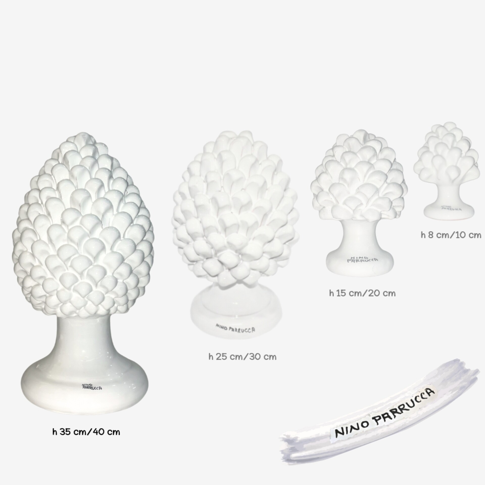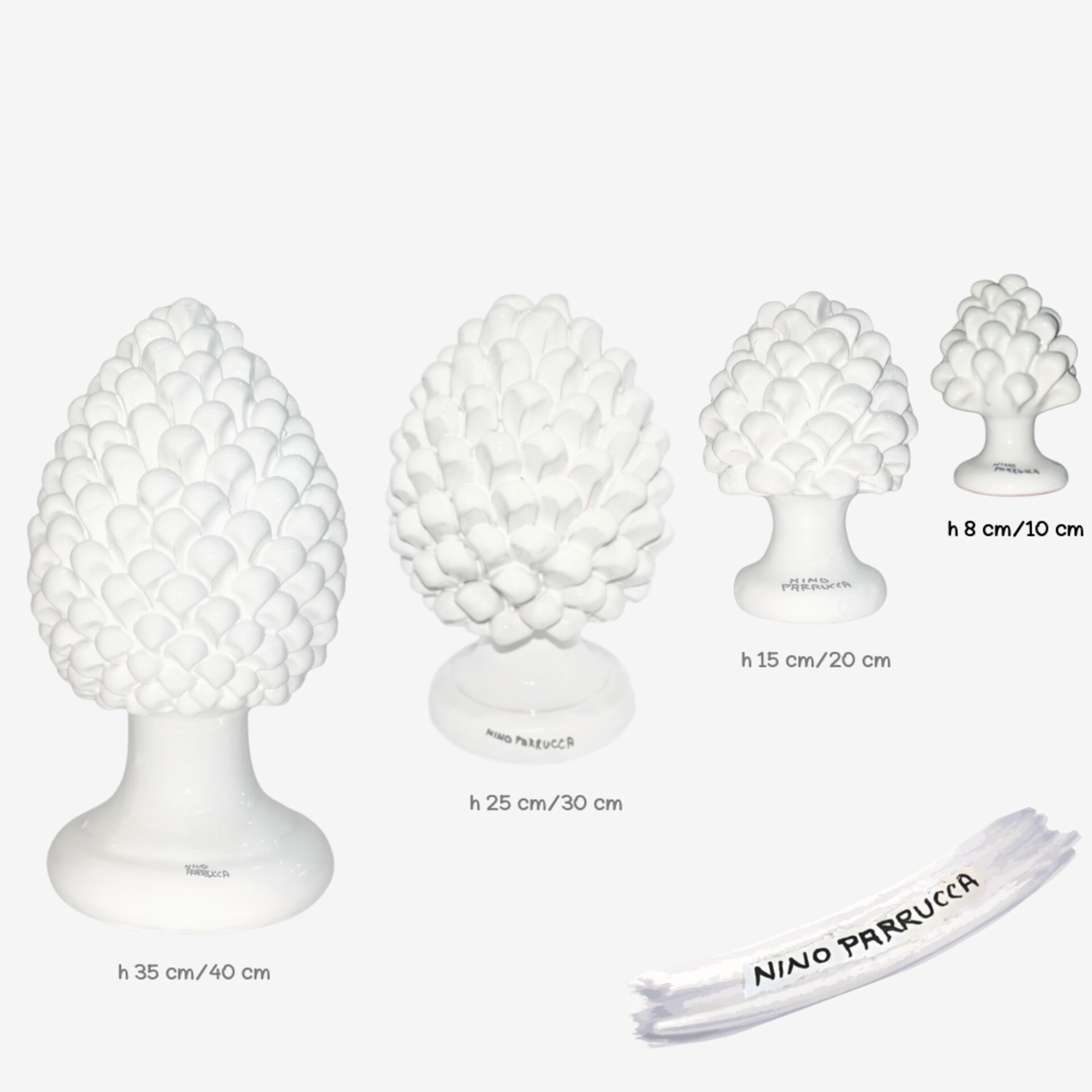 La pigna siciliana bianca racchiude purezza, luce e nuovi inizi. Simbolo di armonia e pace interiore, è un portafortuna ideale per chi desidera rinnovarsi o intraprendere un nuovo cammino di vita. Raffinata e luminosa, dona eleganza a qualsiasi ambiente, sia classico che moderno, sia in casa che all’aperto.