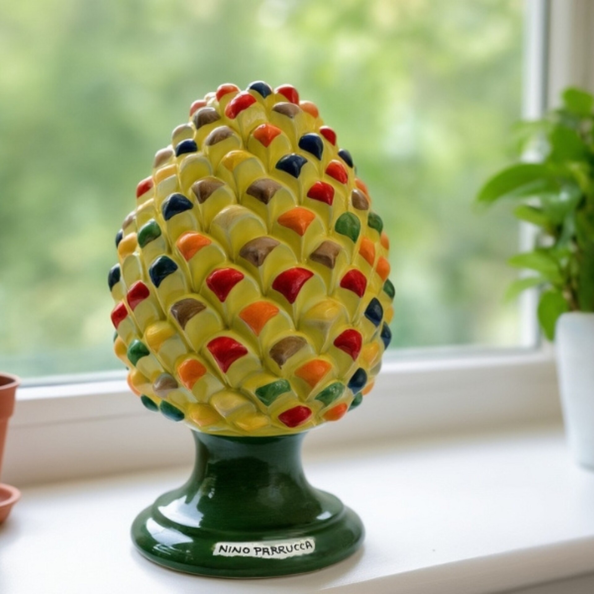 The Sicilian pinecone, the flawless fruit of pine and fir trees, has long been a symbol of eternity and immortality. Born from evergreens—trees that defy the passing of seasons—it represents resilience, renewal, and the cycle of life.
