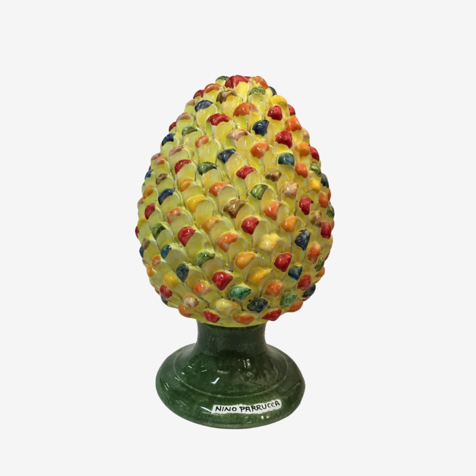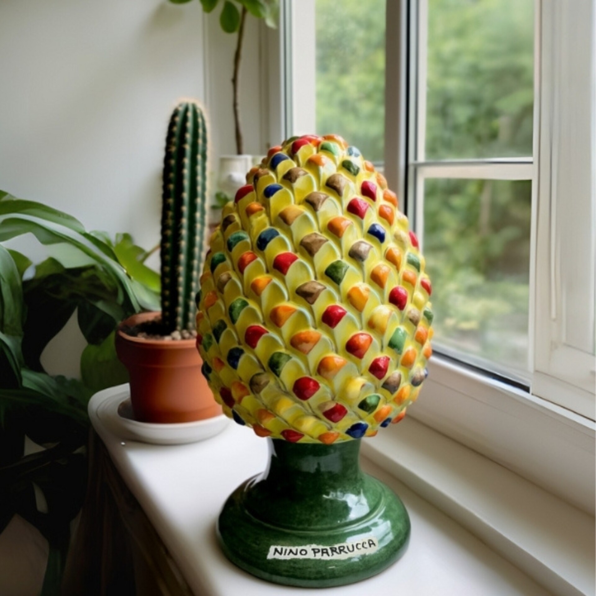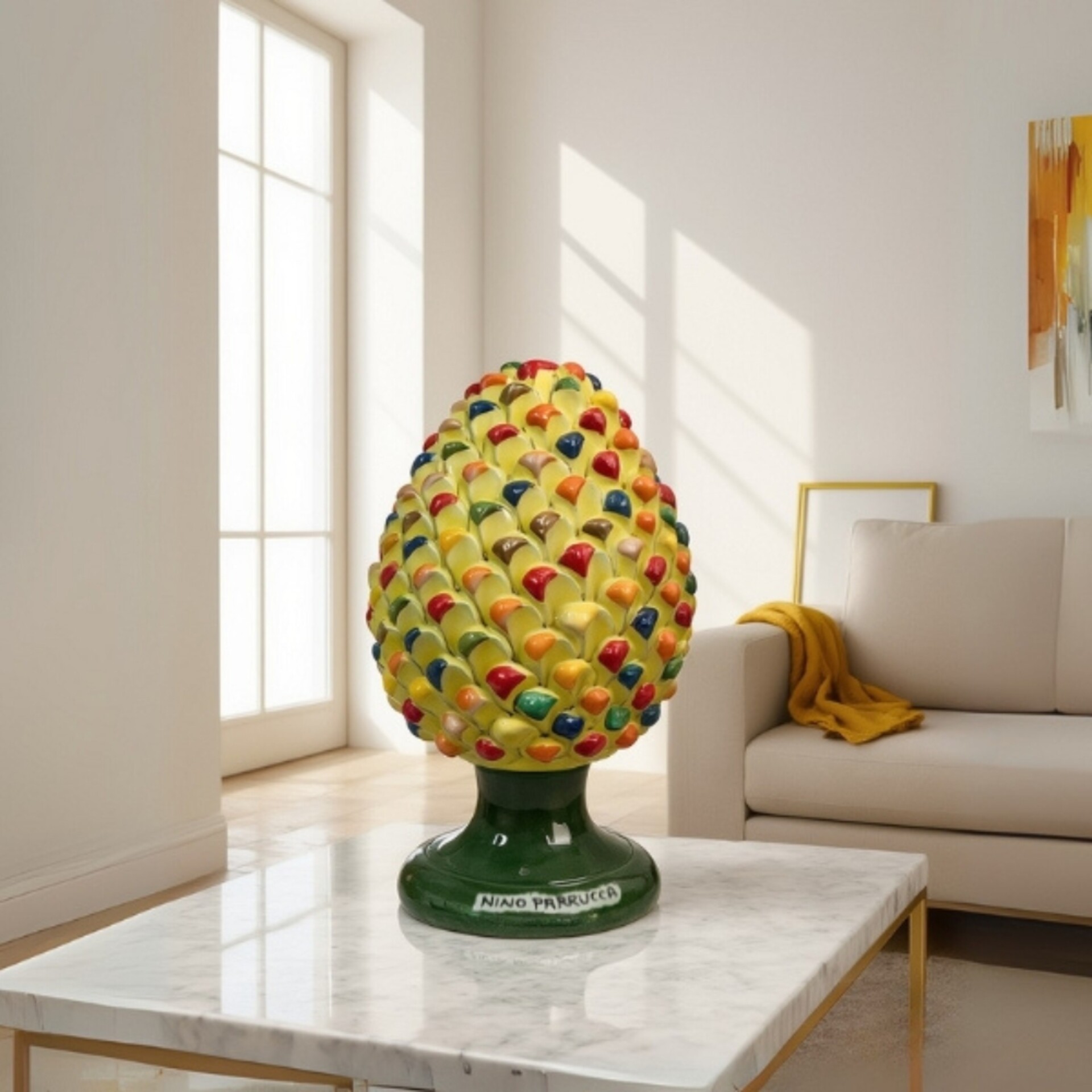 La pigna gialla multicolore è un tripudio di energia e vitalità: richiama la gioia e la luce del sole e, allo stesso tempo, diversità, creatività e armonia.