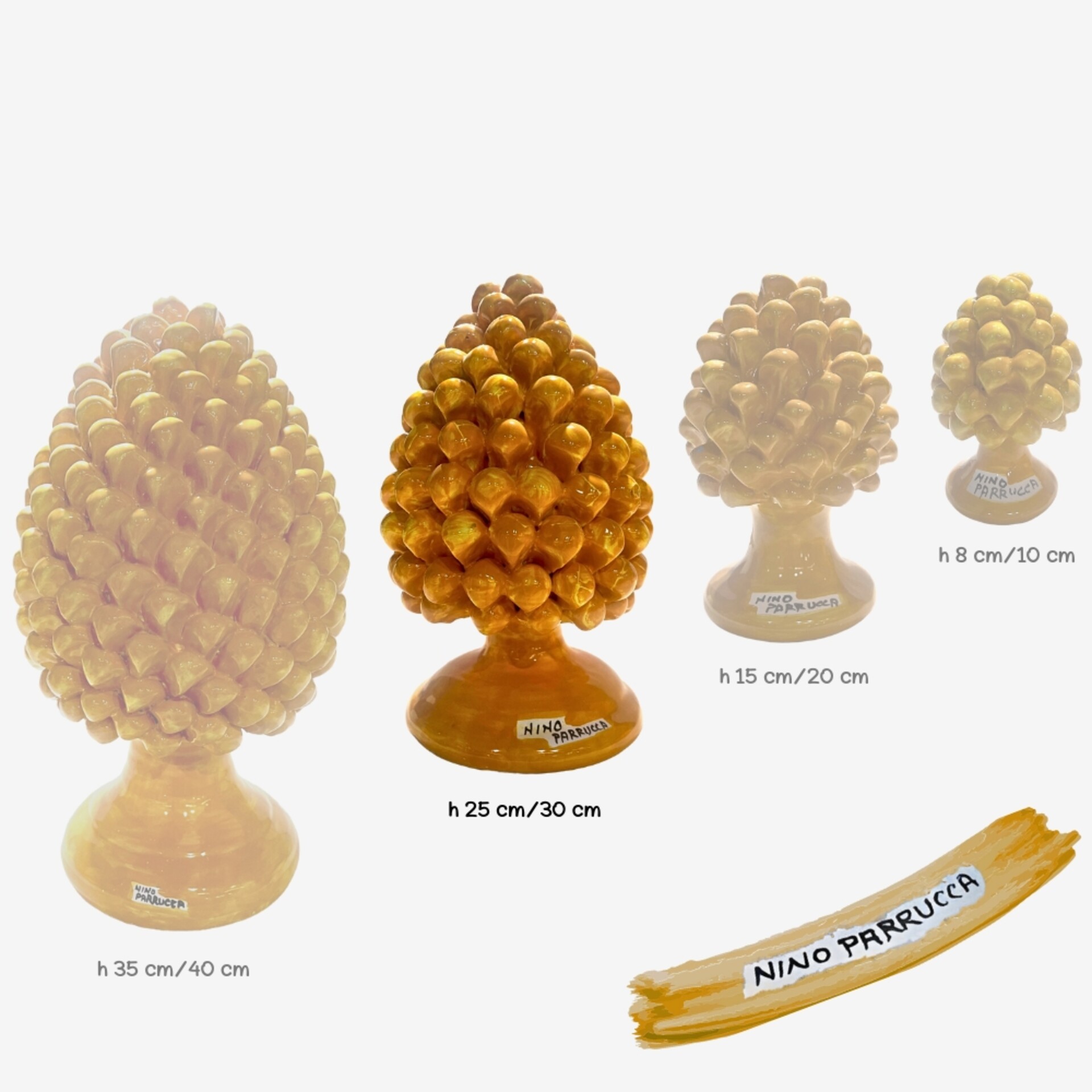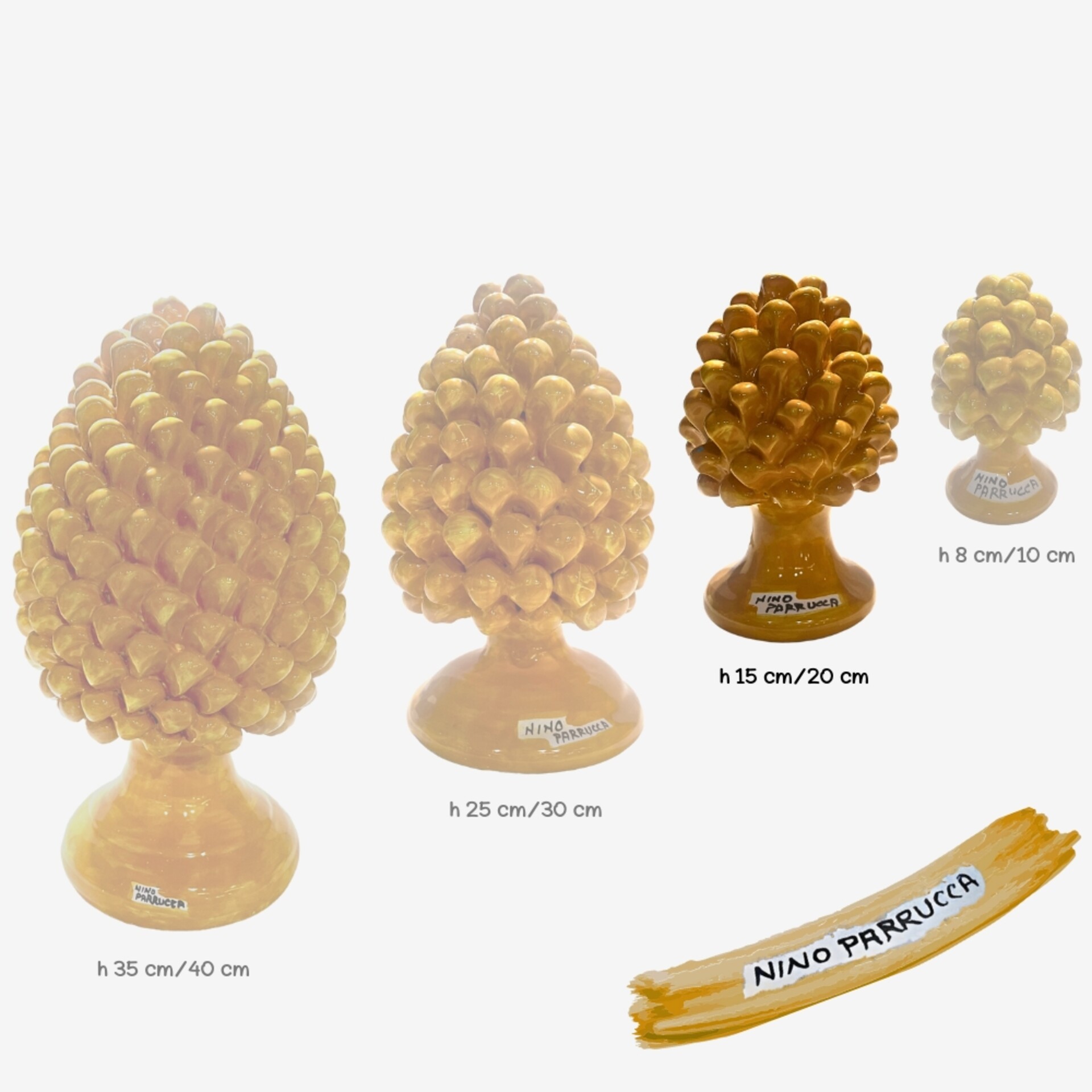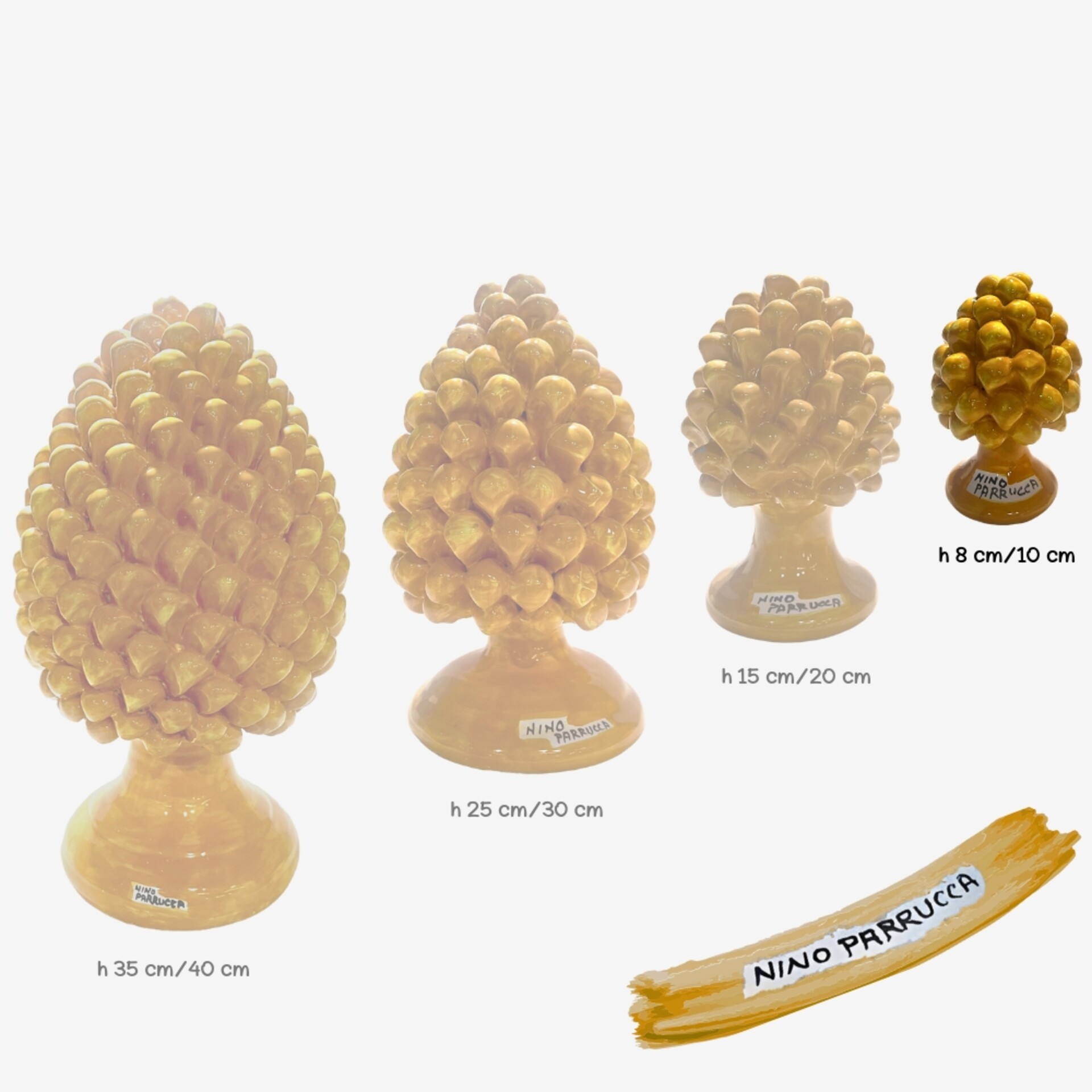 La pigna gialla sprigiona gioia, energia e amicizia. È un simbolo solare che trasmette positività e leggerezza, ideale da regalare a chi porta colore e calore nella vita degli altri. Con il suo fascino luminoso, rende più accogliente ogni ambiente, dentro e fuori casa.