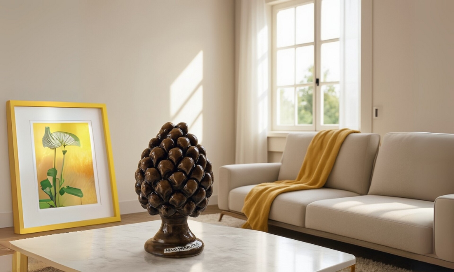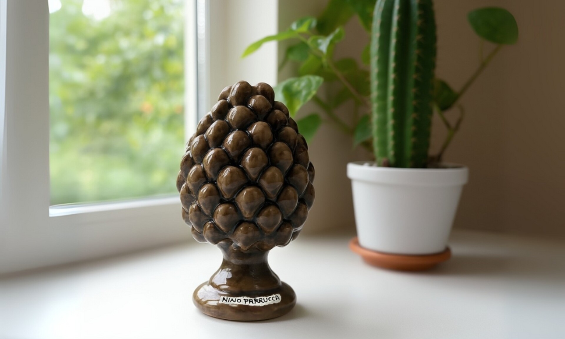 The Sicilian pinecone, the flawless fruit of pine and fir trees, has long been a symbol of eternity and immortality. Born from evergreens—trees that defy the passing of seasons—it represents resilience, renewal, and the cycle of life.