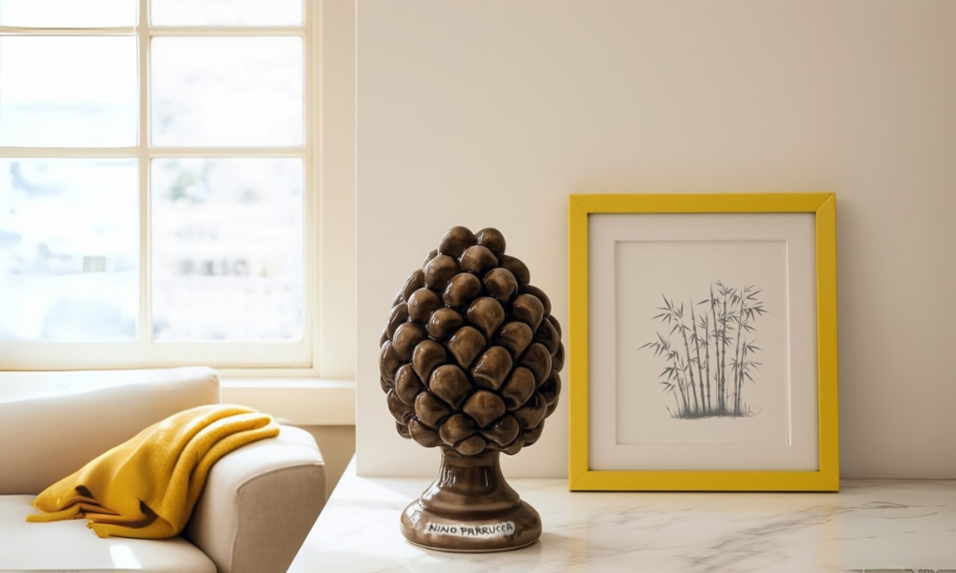 La pigna marrone richiama la forza della terra e la solidità delle radici. È simbolo di stabilità, concretezza e protezione della famiglia. Perfetta per chi desidera circondarsi di valori autentici e trasmettere calore e accoglienza nei propri spazi.