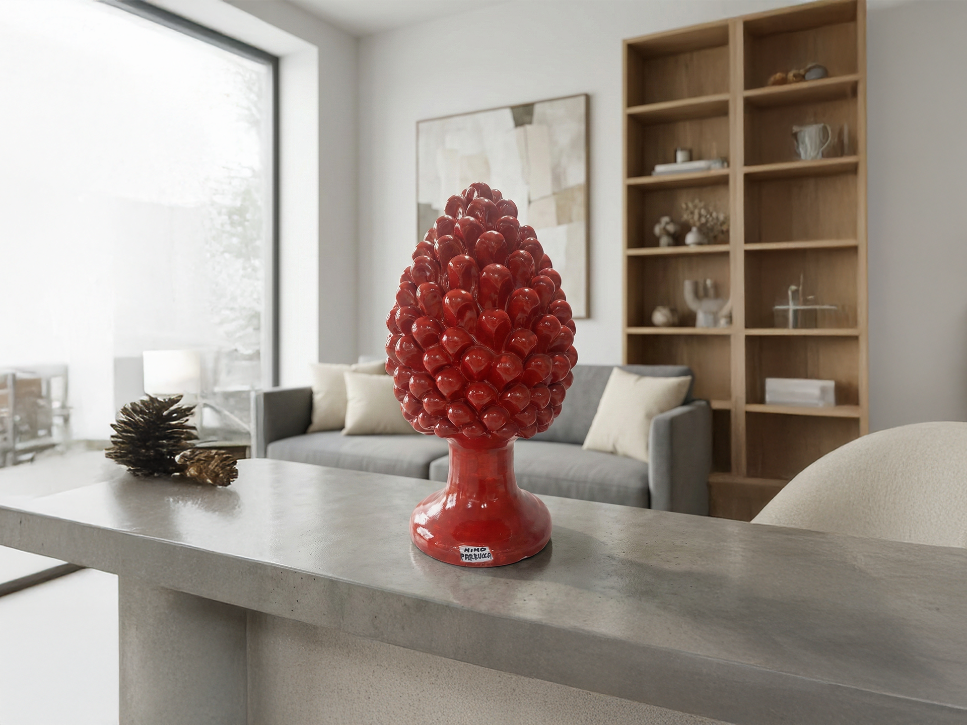 The red pine cone is a symbol of love, passion, and vitality. It is the perfect gift to celebrate a special bond or energize a new chapter in life. With its intense color, it brings strength and enthusiasm to every corner, inside or outside the home.