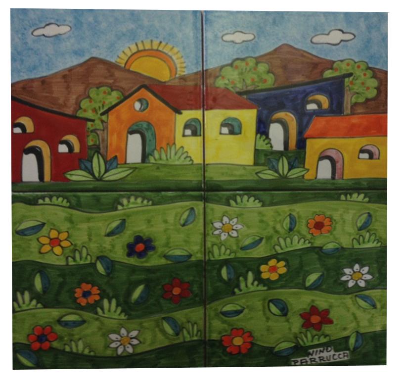 Pannelli artistici murali o da pavimento in ceramica artistica disegnata e decorata a mano.