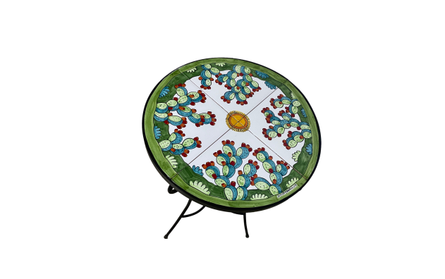 Set 3 pz in ferro battuto lavorato a mano e ceramica disegnata e dipinta a mano con decoro: pale di fichi d'india su fondo bianco